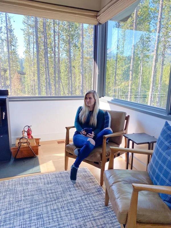 And what you have all been waiting for....a link to our Airbnb. This modern danish cabin was an absolute dream. Hannah was in heaven. The cabin was beautifully designed, complete with a wood burning fireplace, which was perfect for our last day in Big Sky as we got 4" of SNOW (yes, in September!). Even more wonderful than the inside of the cabin, was the location. This cabin (and it's hot tub!) had a front row view of Lone Mountain (the tallest peak in Big Sky), and Ulerys Lake. Hannah loved this cabin so much that she now has her heart set on procuring a Montanan Airbnb...what did I get myself into when I booked this place?! Ok, I want to buy one, too.